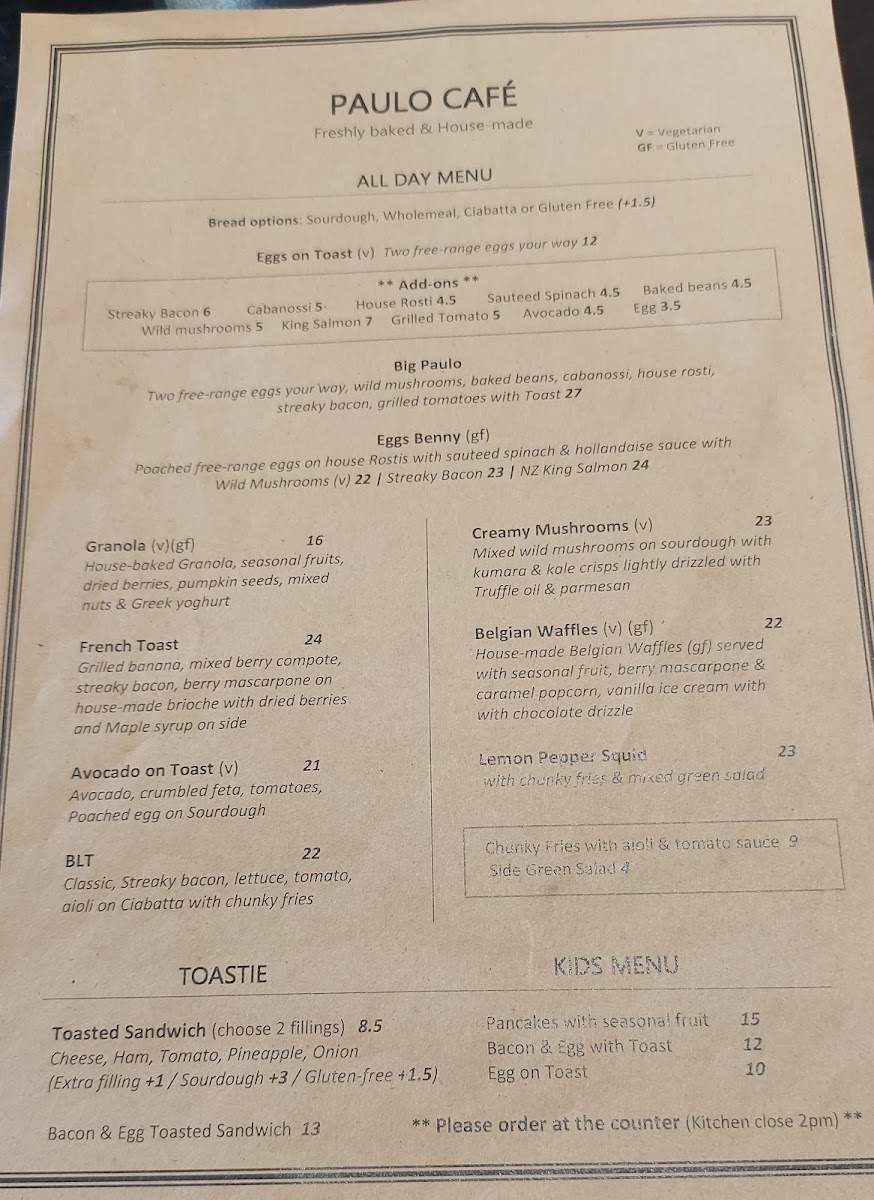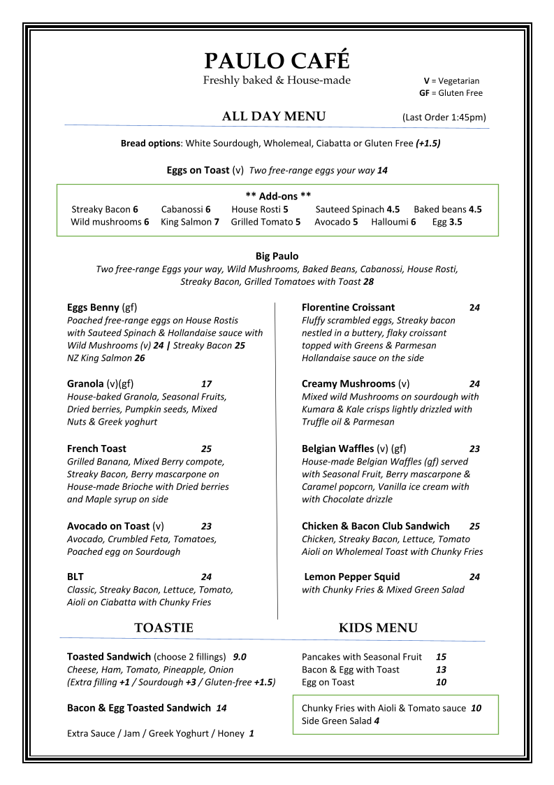 Paulo Cafe Menu