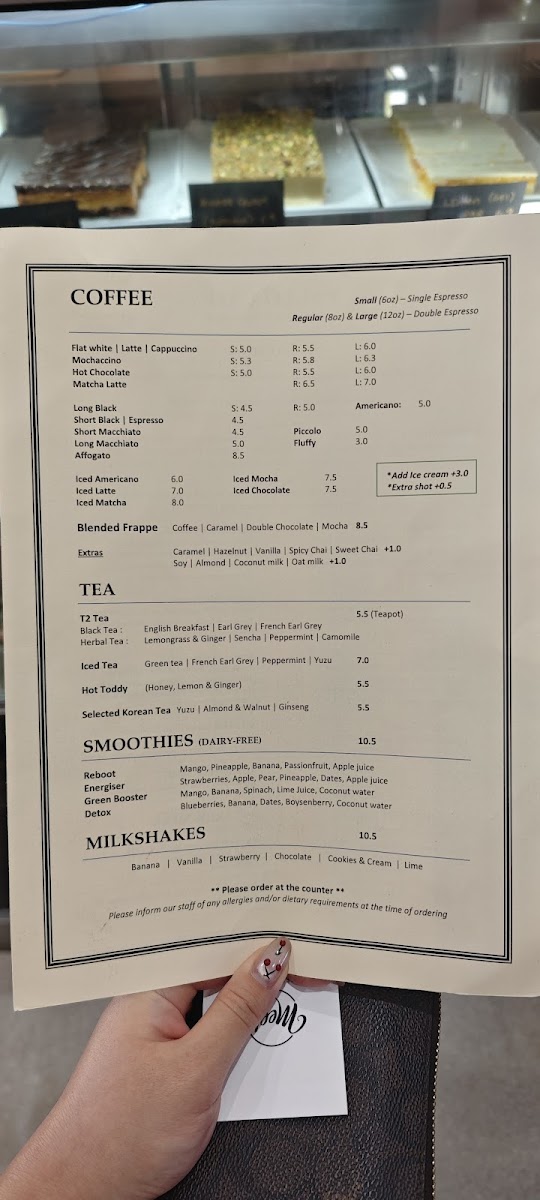 - Coffee and Espresso-based Drinks: Flat White, Latte, and other coffee options.